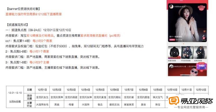 5)活动开始期间请直播账号珍惜机会,不要出现违规行为,如取消权限将无法再参与双12。