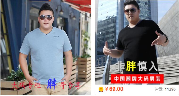 前面的是卖家自己做的,通过对比大家就可以明显发现差距了,第一张确实是有文案,但是首先文案就是不怎么吸引人,“大码专柜,胖哥专享”虽然意思表达的比较明显,专门为胖子设计的衣服,但是这样的问题就是比较普通了,基本上同行都用过这样的文案。