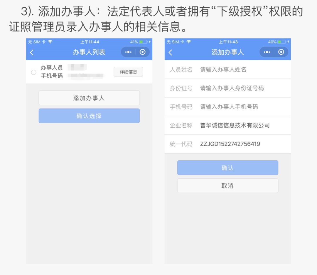证照管理员:被法定代表人授权保管,持有,使用电子执照的人员。