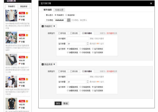 我们可以选择新品快报和热销排行。然后可编辑推荐直接勾选款式,分类,或者关键词排序。也可在标题设置设置比较吸引人的标题