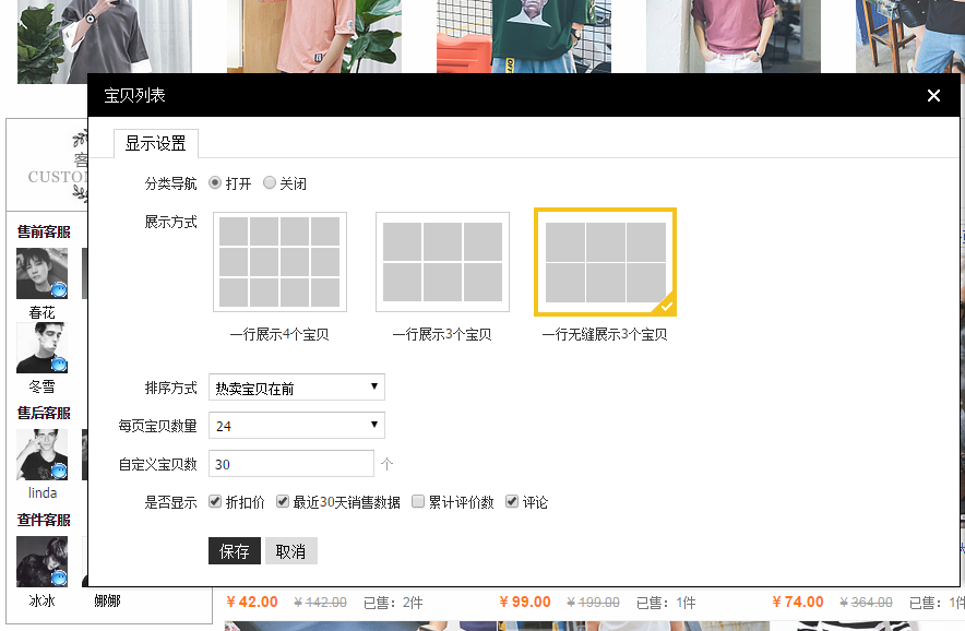 接着下方有所有宝贝编辑可选择宝贝数量已经是否做一些展示的选项