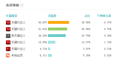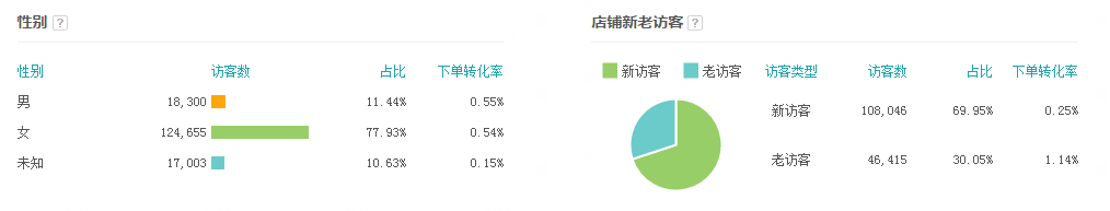 天猫等级,性别,新老访客也是一样,记录在表格里面。