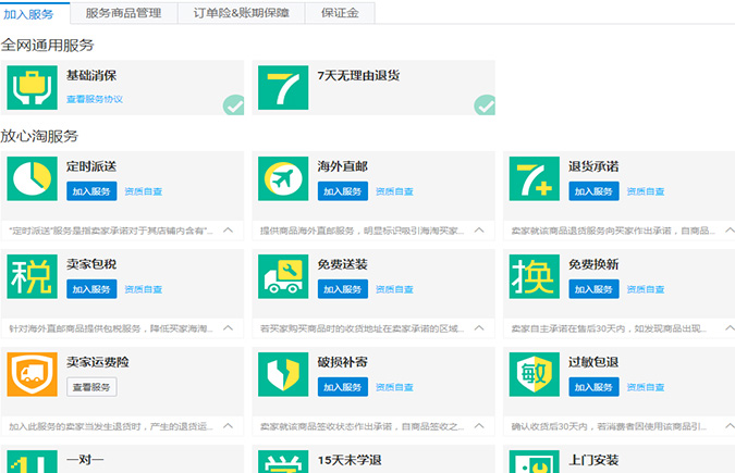 淘宝的7天无理由退货,15天无理由退换货,送货上门,等等