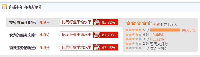 产品描述相符性,卖家服务态度,产品发货速度,,这些东西都是我们可以控制的,基础数值小的时候会很明显的显示,但是数据大了后波动就不再明显,一旦出现连续下滑的现象也会影响到店铺的流量,所以我们也是要时刻注意他。在这里有句题外话:各位卖家一定要注意自己的基础动态分,使他一直飘红。尤其是天猫卖家,天猫DSR值没有达标会在合同终止期被清退!不会被续签 。
