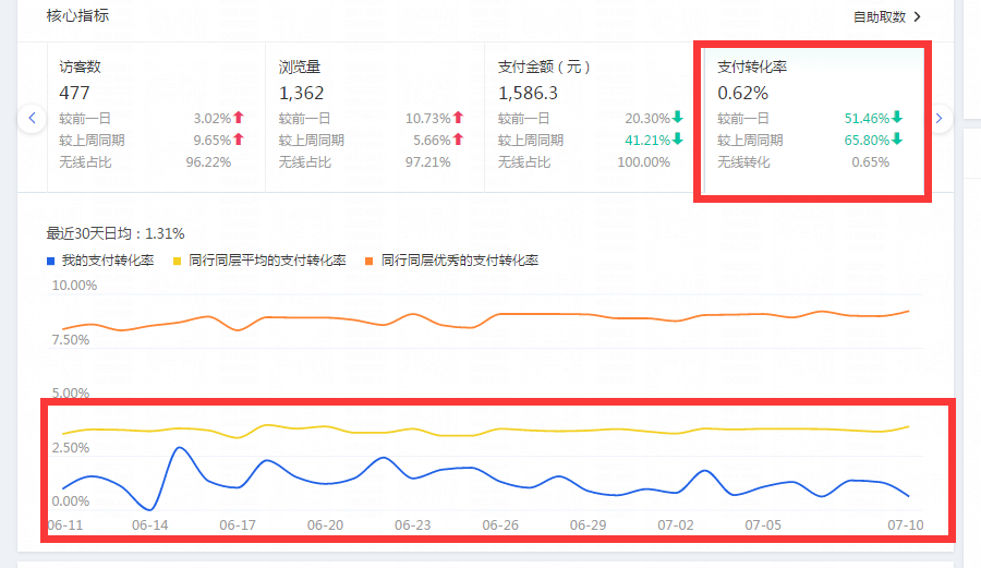 所有的数据指标不是绝对的概念,不能凭借自己的主观去臆断,我们不能看自己的本店值然后判断好与不好,有些数据我们需要去跟自己的同行对比,跟自己历史对比,才能做出正确的判断。